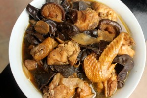 The Chinese believe a new mother after childbirth needs to restore her health and energy, thus sesame oil is used in this dish to warm up her body and to promote blood circulation. The crunchy wood fungus (mok yee) helps rid the body of all unwanted stale blood and to improve blood circulation. Slices of old ginger is used here to dispel air trapped in the body that may cause discomfort in the abdomen and rejuvenate a good appetite. This lovely dish must be served hot and tastes absolutely wonderful to hungry new mothers and everyone who yearns for a bite.